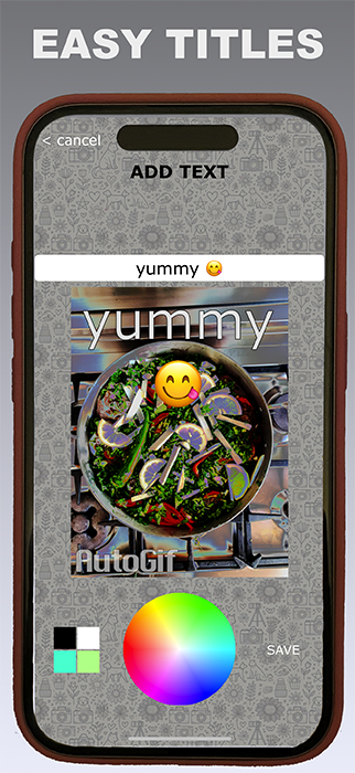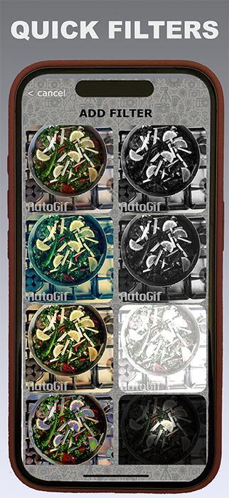 Record instant looping GIF animations with a single touch! Create instant looping GIFs from your Photos in seconds! Send them everywhere! Simple, Quick, and Super Easy!